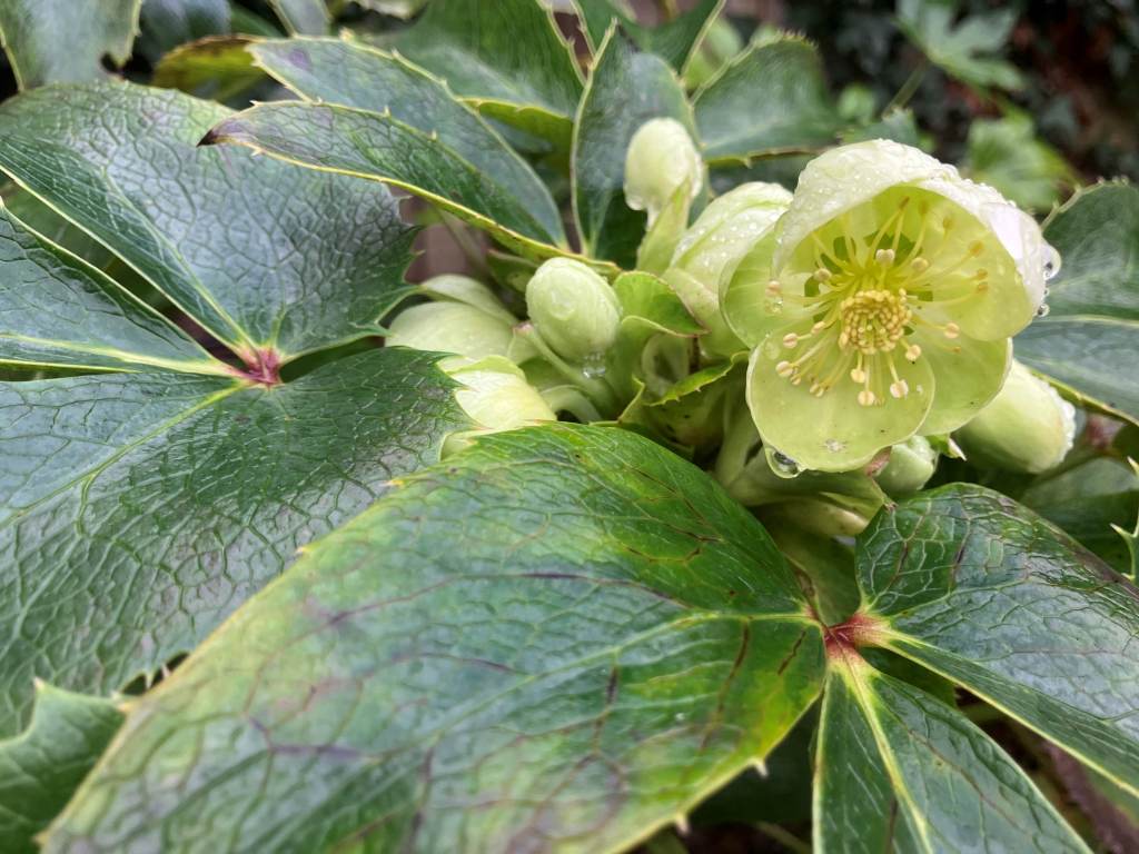 Lastly, the lime green flowers of some hellebores. These are meant to be ‘Pretty Ellen’ but I have very strong doubts.