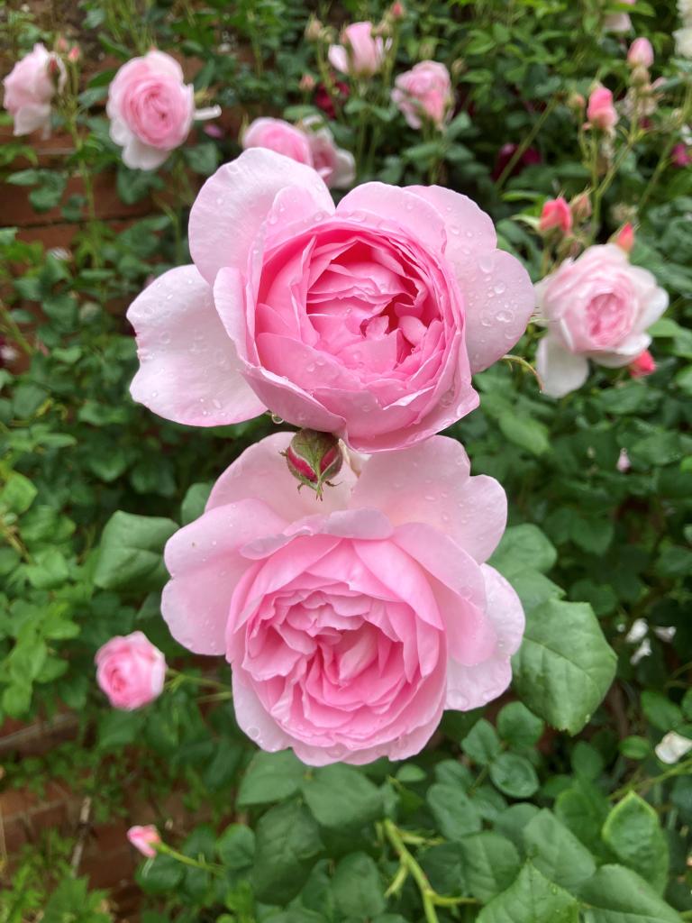 I’m not going to be too harsh on myself but…I did realise yesterday that the ‘Wisley’ roses have really taken over this year. The bearded irises and my last remaining clump of delphiniums are hunkered down beneath them hoping for a chance to break through. It is also very evident that the yellow phlomis and the red ‘Tess of the D’Urbervilles’ rose are not a match made in heaven. I can’t really be blamed for the self-seeded geranium psilostemon that have sprung up everywhere. I like them, but they are crowded in out other things. Like the verbena they will have to be thinned. I noticed this disarray as I was dead-heading roses, their scent rising in the sunshine as bees bobbed in and out of them. It wasn’t all bad in the garden. Here’s six for this week.
