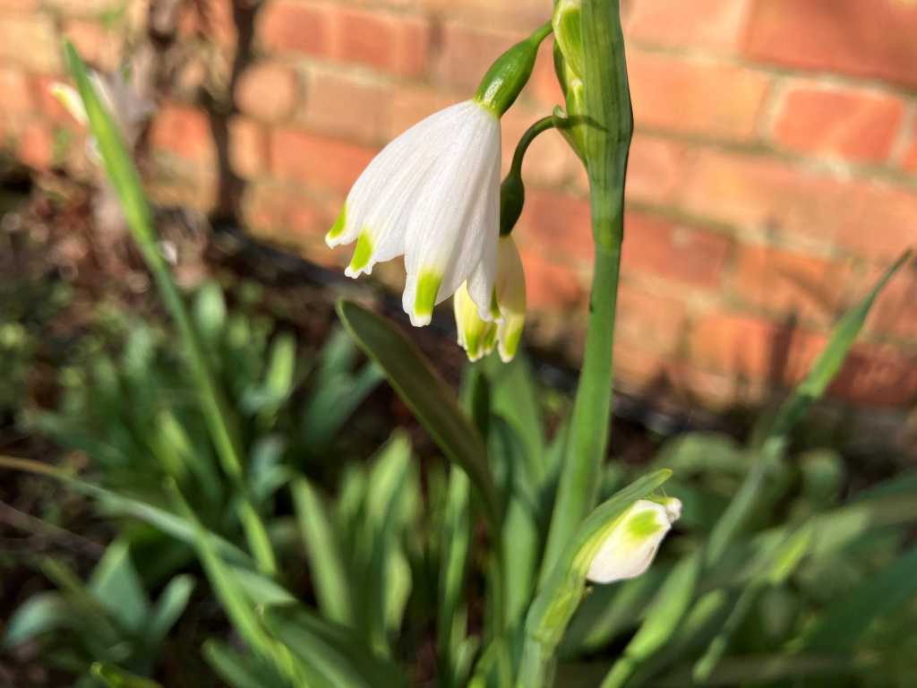 The first flower of Leucojum aestivum ‘Gravetye’ popped out during the week and today from the kitchen window I saw that more had opened.
