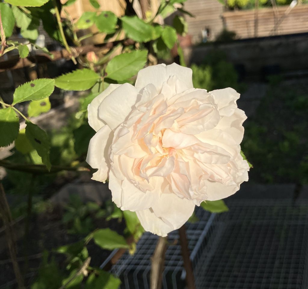 The first rose has opened. ‘Madame Alfred Carrière’. A certain on-line supplier lists it as flowering from July. Pretty early then! It grows over an arch and needs to taken in hand every now and then. But lovely all the same.