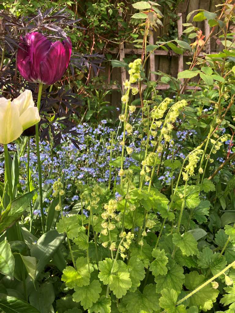 Tellima grandiflora. Should I have kept these for next week? They are almost at peak fringe cup status. I can’t resist them, perfect for shady spots. As these have self-seeded they are gradually appearing in sunnier spaces too. Not a problem – at the moment.