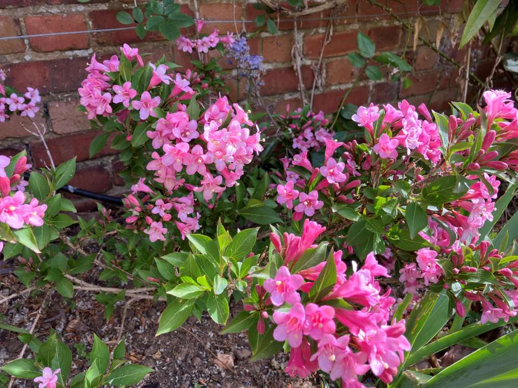 I was tempted by this dwarf weigela a year or so ago, it fills a spot but it’s not very stunning. Maybe it needs more attention. It’s not as vibrant pink as this in real life.