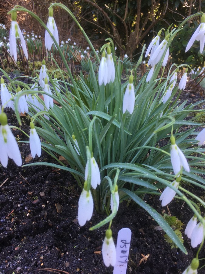 The ground is still very wet, the weeds, particularly the bittercress, are enjoying the damp conditions and I’ll have to get to them soon before they find the energy to flower. That means I’ll be in the garden which can’t be a bad thing. And would you believe it, I’ve just had a delivery of 300 in-the-green snowdrops! They are so late coming due to the poor conditions for lifting them from the fields. That sorts out my morning. Mr P has all the updates from other SOSers. Plenty to admire and inspire! Cheerfulness all round I think.