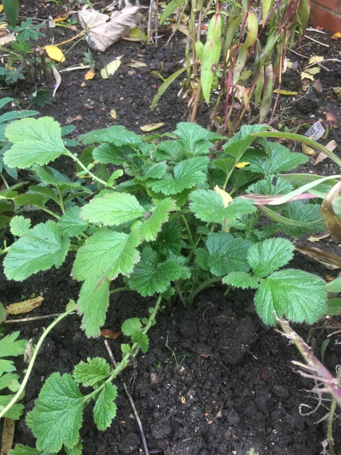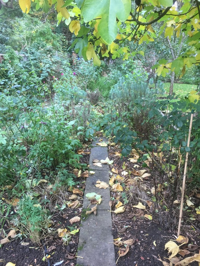 Some of the anemone leaves have fully turned brown which contrast well with those that are still green. I’ve been working round the garden removing the brown geraniums and soggy delphiniums and it is a delight to see that weeds are doing so well at this time of the year. They just cannot be defeated!