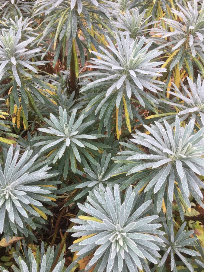 All those good gardeners who have winter structure in their gardens will be smiling smugly now as I try to find the last three. I don’t have much in the way of seasonal shrubs which I always mean to rectify but never quite get round to. My long border winter structure comes from four euphorbia characias subsp. wulfenii. Every year they take it in turns to look unhappy. Believe it or not, this is one of the healthier ones. This year’s sad specimen is being closely watched but I now have two seedling understudies waiting in the wings.