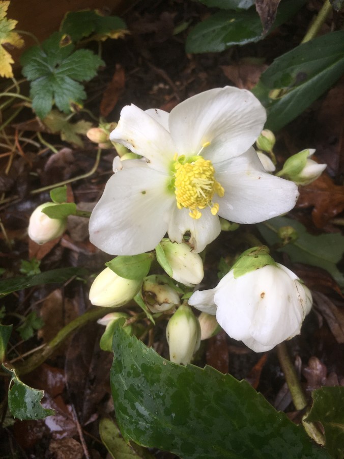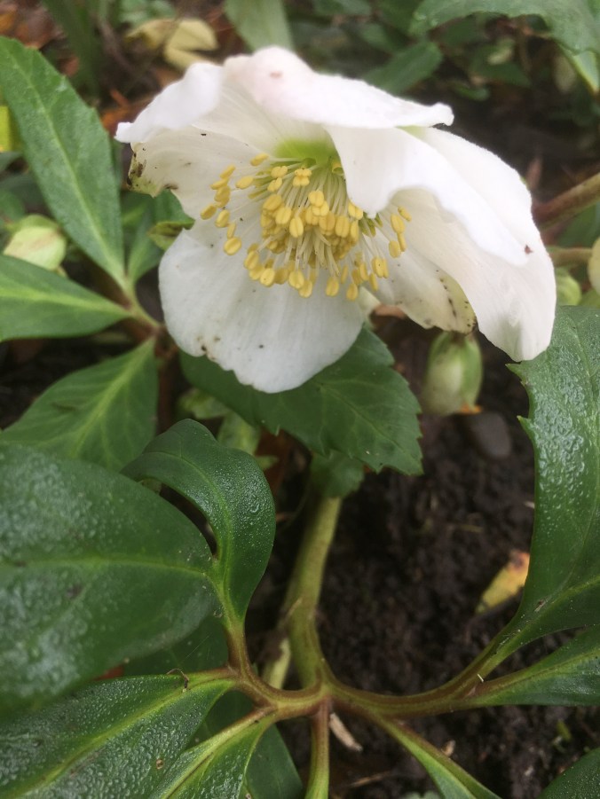 The second wave of hellebores have opened up. Common or garden white ones. Sadly I lost three of these over the summer. One end of this border is much sunnier than the other and those at the sunny end suffered from my negligent watering regime. I am regretting that now.