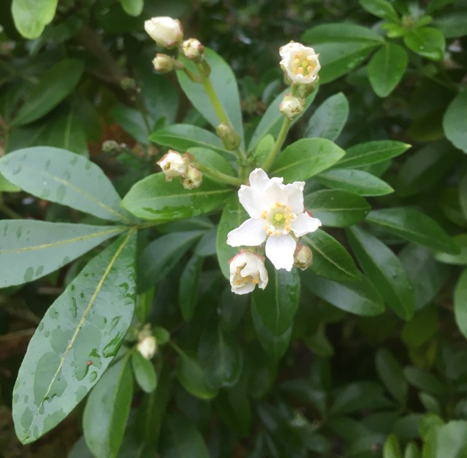 The choisya is having a go at its second flowering. It’s towards the western end of the north border so receives a little of the winter sunshine. Perhaps today’s sun will encourage a few more buds to open.
