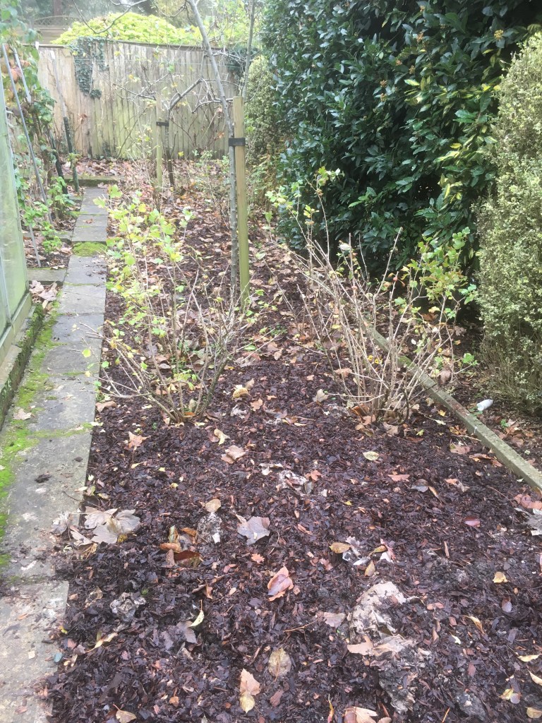 More new plans to put in place for this patch of ground. I took out both white currant bushes and a good number of gooseberry bushes earlier in the year and sowed a green manure mix. That has now been dug in and mulched over. Now the ground is ready to receive a new redcurrant bush and a new white currant bush. All the bushes will now have more room to breathe and hopefully I will be able to net them more successfully against the birds.