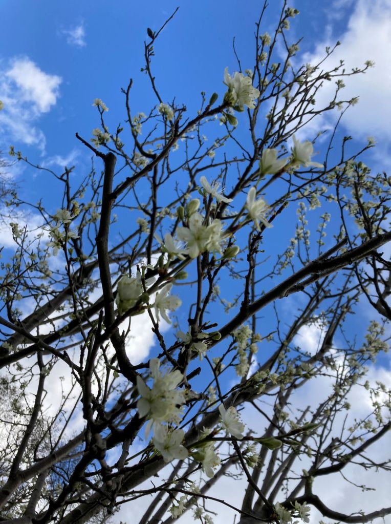 The plum blossom opened up at the beginning of the week, only to be thrashed about by a vicious north wind. Here’s hoping some of the blossom makes it through to fruit.