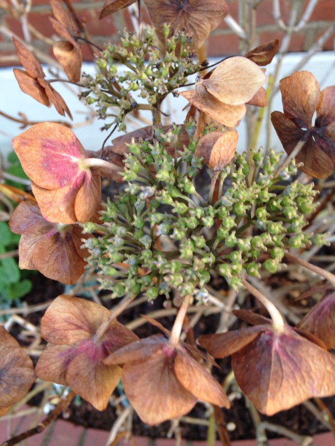 I upended the summer bedding a few weeks back but the pelargoniums looked as if they could take a few more weeks so I potted them on and they have dutifully put out another round of flowers.
