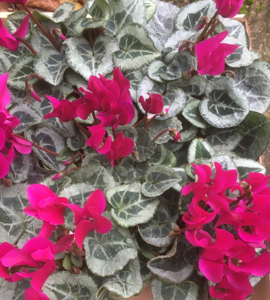 This is the one that did it. I have always envied my neighbours spread of cyclamens that sprinkle themselves around like jewels at this time of the year. The flowers are tiny but stunning. While searching for six lovelies for this week I found this small clump in my garden. Self seeded from over the fence. Do I thank the birds or the wind? I don’t know how long they will take to spread out in this garden but I can be patient.