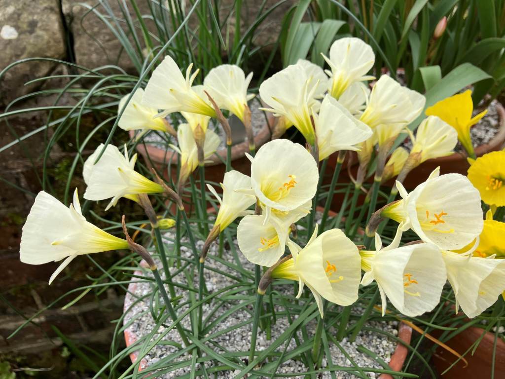 Here’s a mixed display with ‘Toto’ at the front and the yellow on the left is narcissus cordubensis, not one I’m familiar with at all but it is truly delightful.
