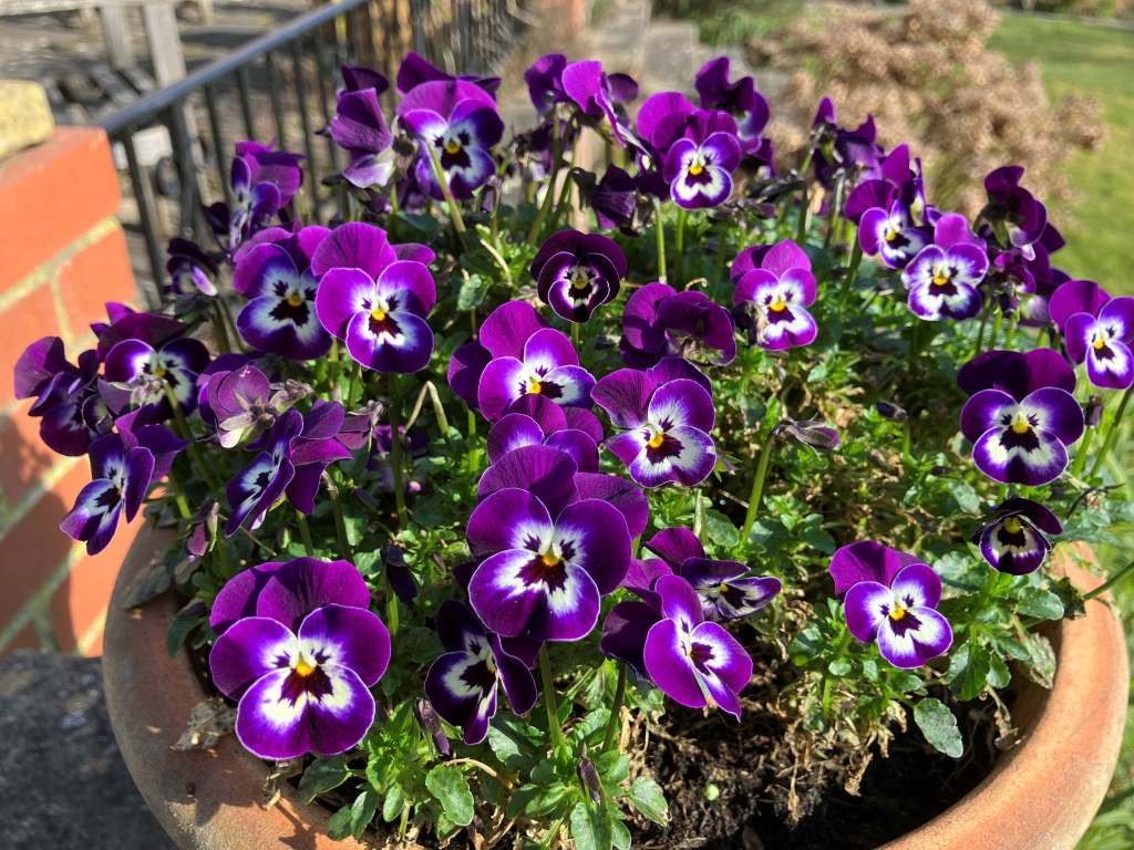 The winter pots filled with violas have continued to be cheerful, this pot has done incredibly well.