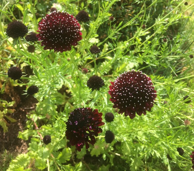 The frozen ground and frost may seem inhospitable but the garden grabs each growing moment and gets on with it. These are day lily shoots and the first leaves of geranium phaeum. It will be some months before their time to flower comes.