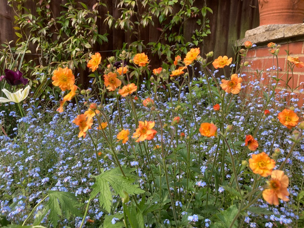 This is a two for one, ‘Totally Tangerine’ geum with a young viburnum plicatum f. tomentosum Mariesii. The viburnum has a some growing to do but it looks pretty even now.