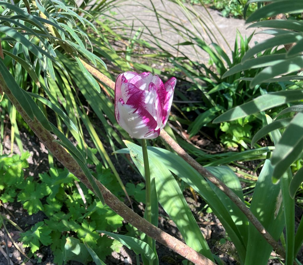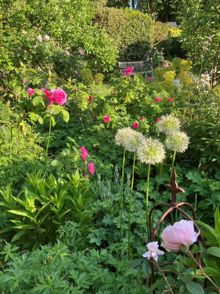 Finally a view of part of the border. My delphiniums were munched to ground last year and I can’t see a sign of them this year. But it’s pretty crowded out there anyway.