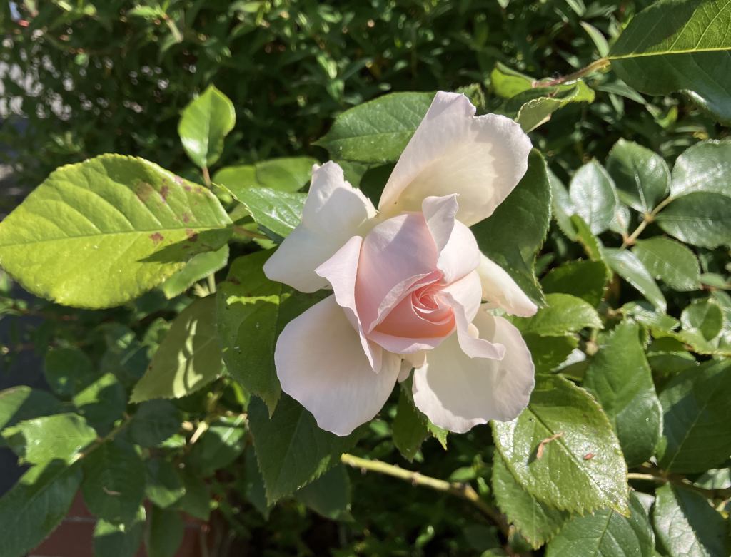 An unknown rose from the front garden, looking very fetching earlier in the week.