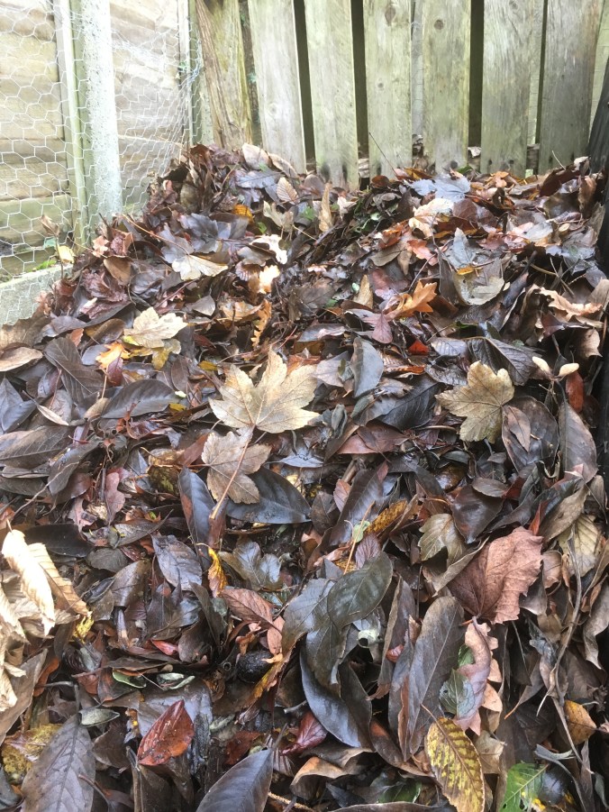 I commented last week on how often the fox had startled me in the garden and sure enough it happened again. I went down to the back corner of the garden to investigate and there was a tell-tale depression in the leaf mould heap. The fox had found a very comfortable and dry place to curl up and rest. There’s not much I can do about that for now but after some rain it will become a little too soggy for comfort.