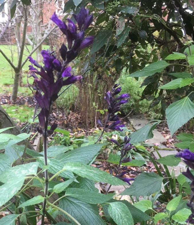 There are still some surprising flowers in the garden. This is clematis ‘Madame Julia Correvon’, a viticella variety.