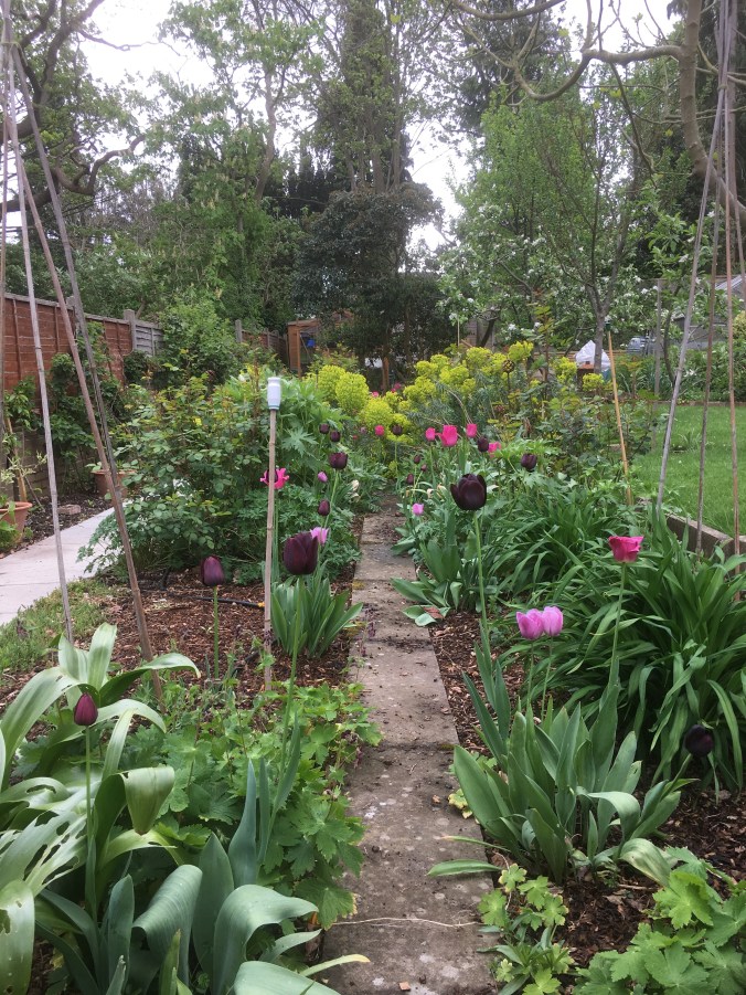 Elsewhere in the garden, I have offered up my dwarf French beans to the slugs – with coffee grounds and beer traps as protection. I don’t really have enough coffee grounds but I’ll be adding to the defences on a weekly basis. The tomato plants are getting stronger and I have sown courgette seeds. I don’t have too many flower seedlings as a couple of half trays look non-germinating but that means less toing and froing in and out of the greenhouse to harden things off. I hope things are going well with your garden, there’s more to be discovered on Jim’s page. Happy gardening.