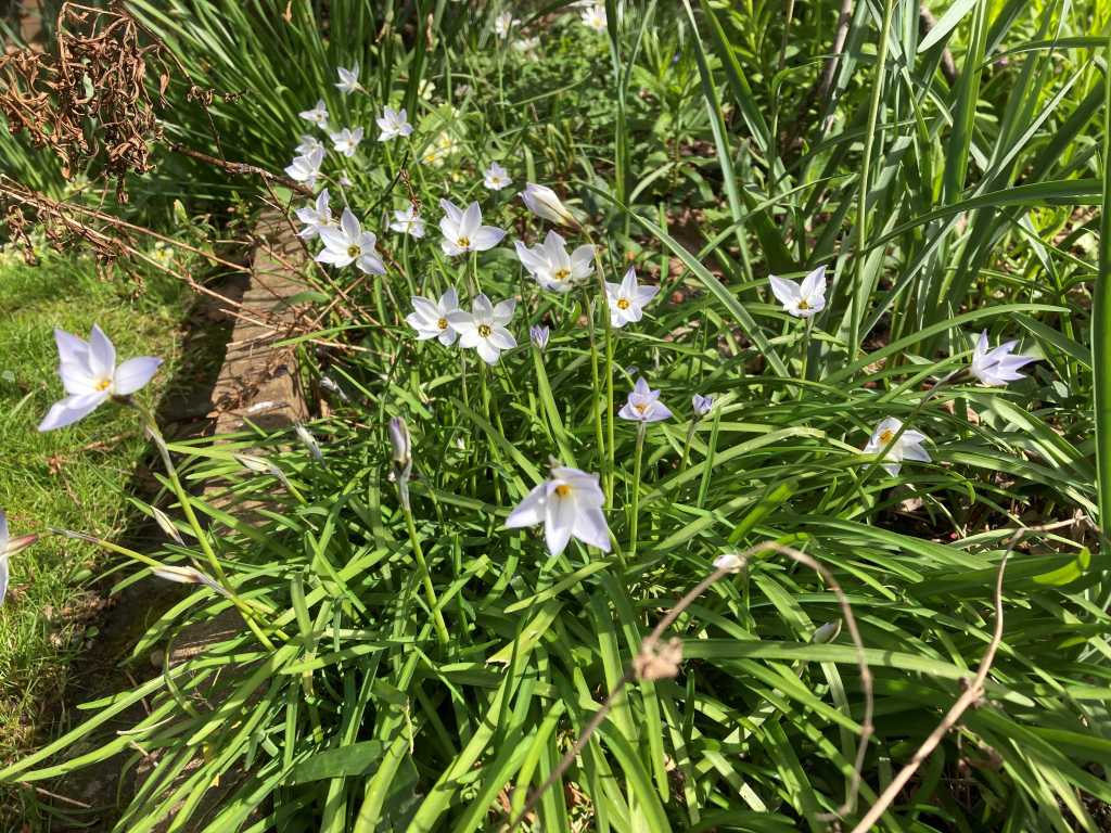 These are pretty little flowers but there’s more leaf than flower. Ipheion uniflorum, or spring starflower. They can stay but I’m not overwhelmed!