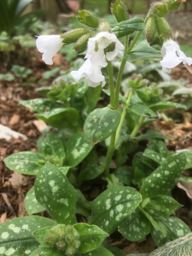 Fresh green leaves caught my eye. There has been frost here but the temperatures are on the benign side and this pulmonaria thought it was worth putting out some new growth.