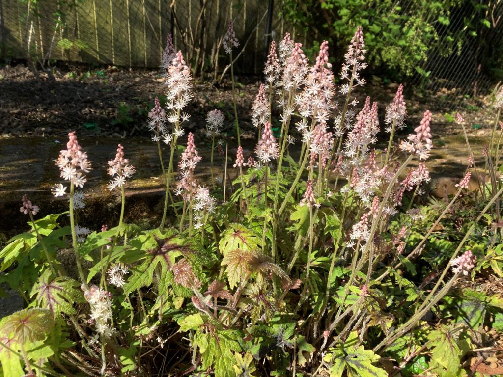 I was very taken with some helleborus argutifolius or holly-leaved hellebore that I saw in a garden some time last year and three were promptly added this garden. Hardy to H5 and preferring some shade they seemed the perfect choice. It’s year one and they are flowering. That’s a tick, now they have to survive black spot and the honey fungus that also likes this corner.